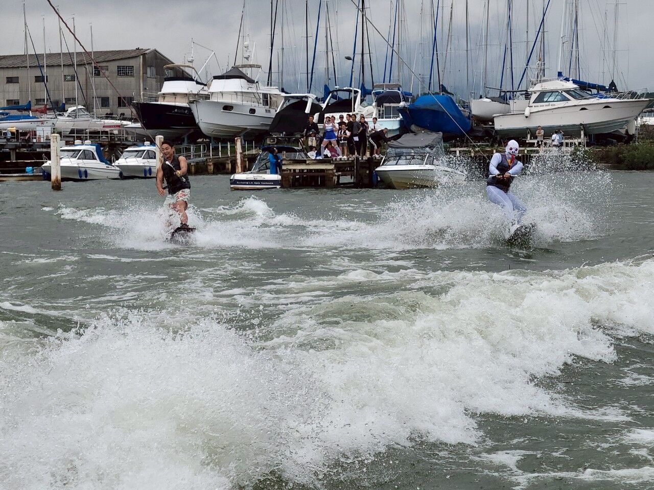 Laugh wakeboarders