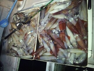 ちなみに、これでもまだイケスの中にイカがいます(爆)