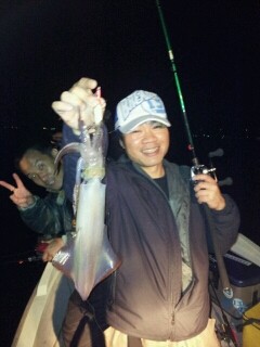 遊漁船に比べライトが弱いのですが、それでも先生の船のライトで水面下10m以内に寄って来ます。