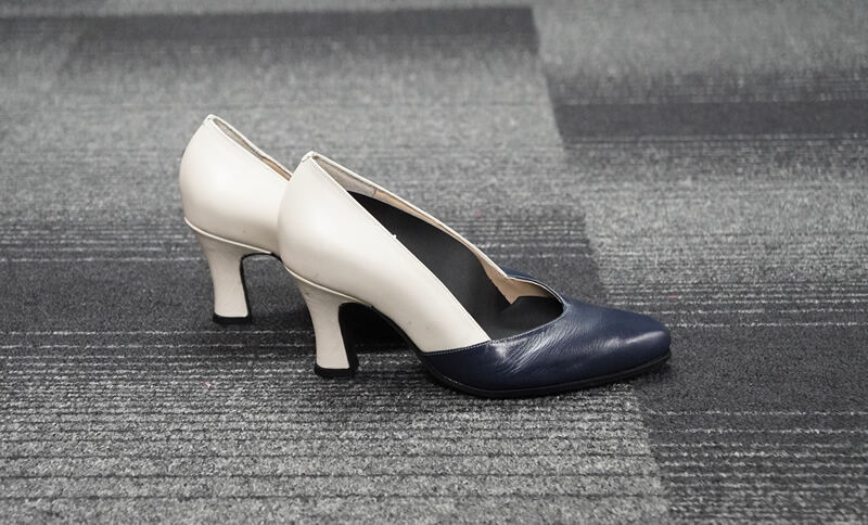 ネイビーとホワイトのバイカラー8cmヒール。