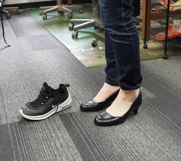 履いて来られたスニーカーからパンプスに。