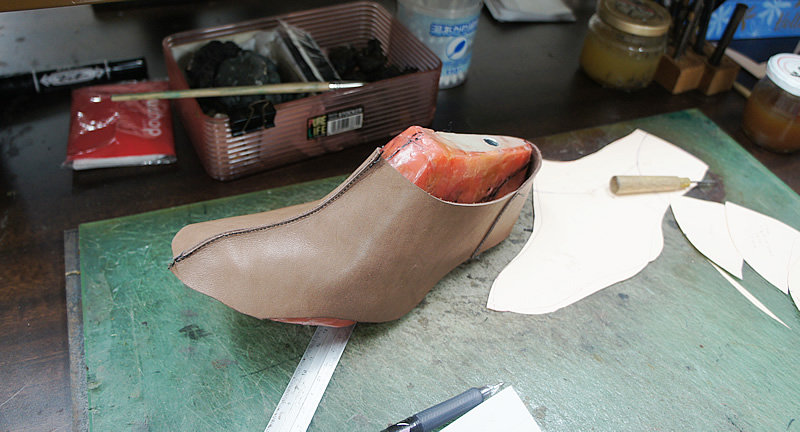 こちらはプレ本科の生徒さんです。1足目と2足目はパンプスを製作され、今回3足目はブーティに挑戦中。