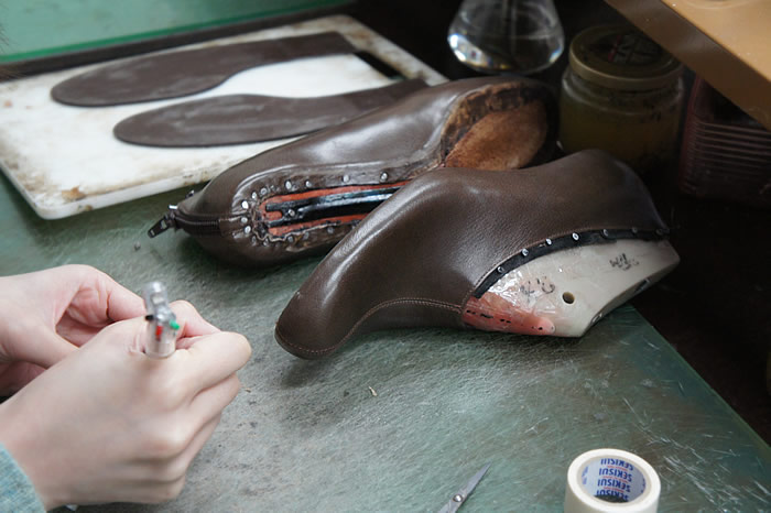 「10足ほど作ったと思うんですが、作っているうちに私の踵が小さい事にも気づいて。それだと普通の木型に少し革を貼ったりする調整だけではなかなか足に合わなかったんです。それで、より足に合うように作るにはどうしたらいいのかな、木型について詳しく知りたいなと思って調べていたら、インターネットでここを見つけて。