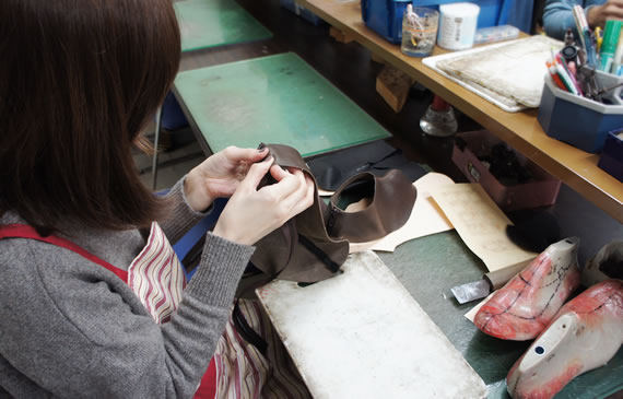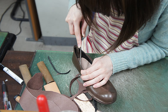 「パンプスは今まで足に合うものがなかったからめったに履いていなかったんですが、(ここで自分で作ったパンプスは)子供の保護者会にも履いていきました!踵がぴったり合っているなって感じです。かかとのサイズを木型の段階でぴったりに作っているから、歩いた時にも脱げてこないんです。」