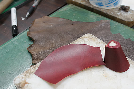 型紙を合わせて革のパーツを切り出したところ。