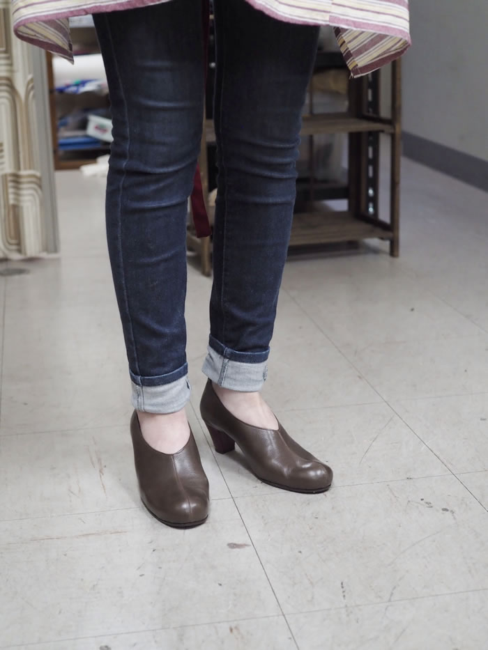 それで実際、もうここで2足パンプスを作っていますが、履き心地どんな感じでしたか?履いていますか?
