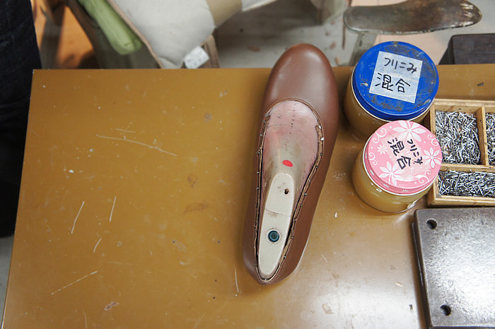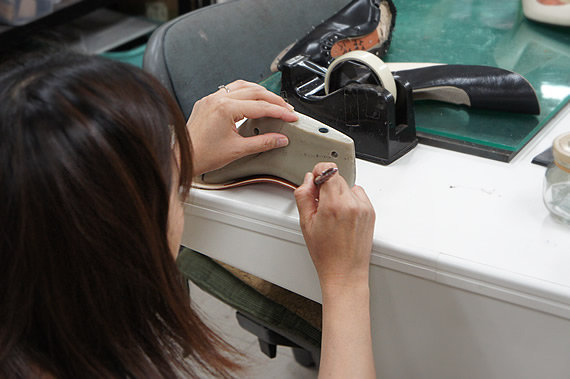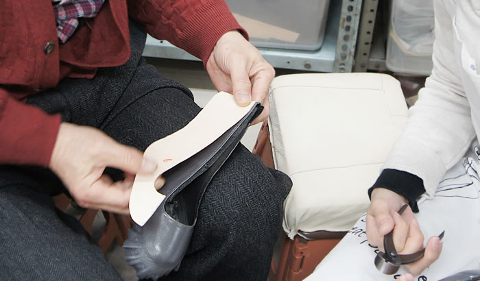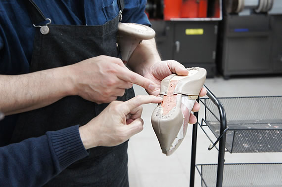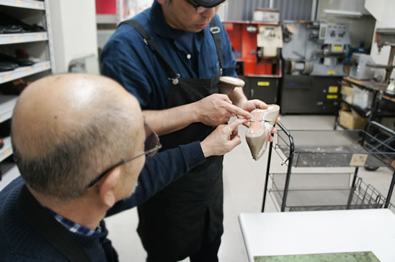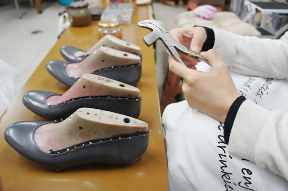 一つひとつの工程で、どんな意味でこうするのか、位置がずれると、あるいは厚みがありすぎると、その後にどう影響するのか・・・等、パンプス作りには配慮しなくてはいけない大切なポイントが沢山あります。