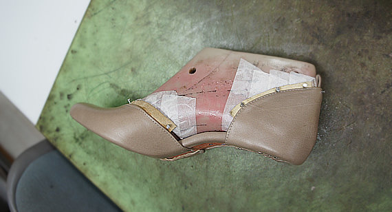 現在は基礎コース。2足のパンプスを同時に作っています。こうすることで、同じ工程を繰り返し行うことができ、作る工程を覚えやすいのだそう。
