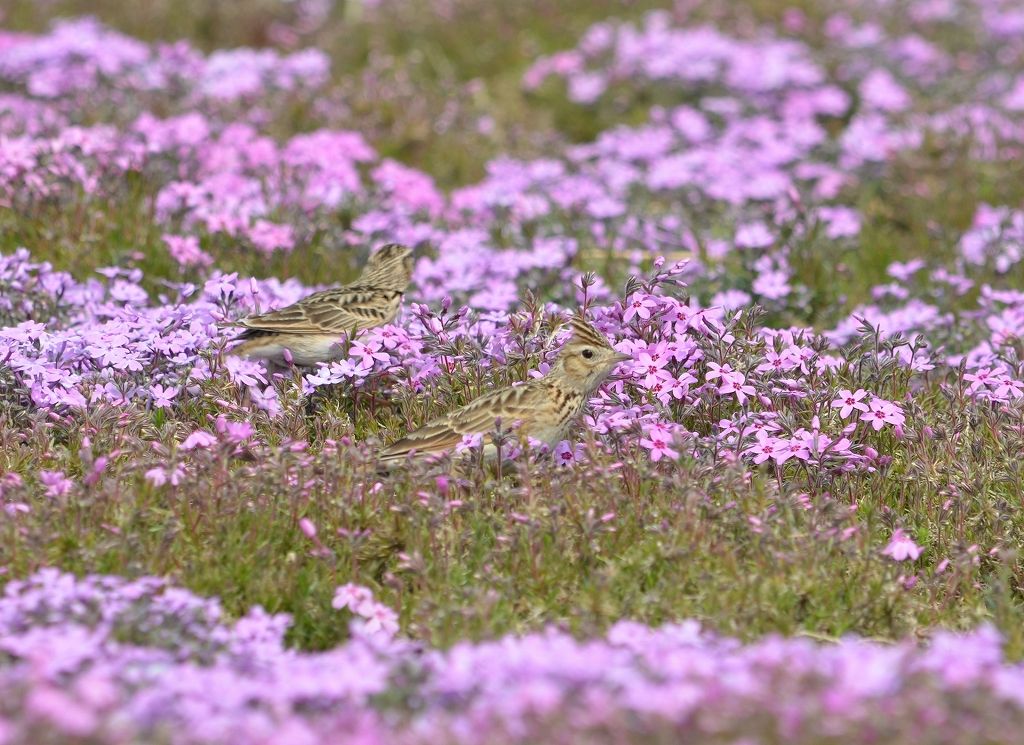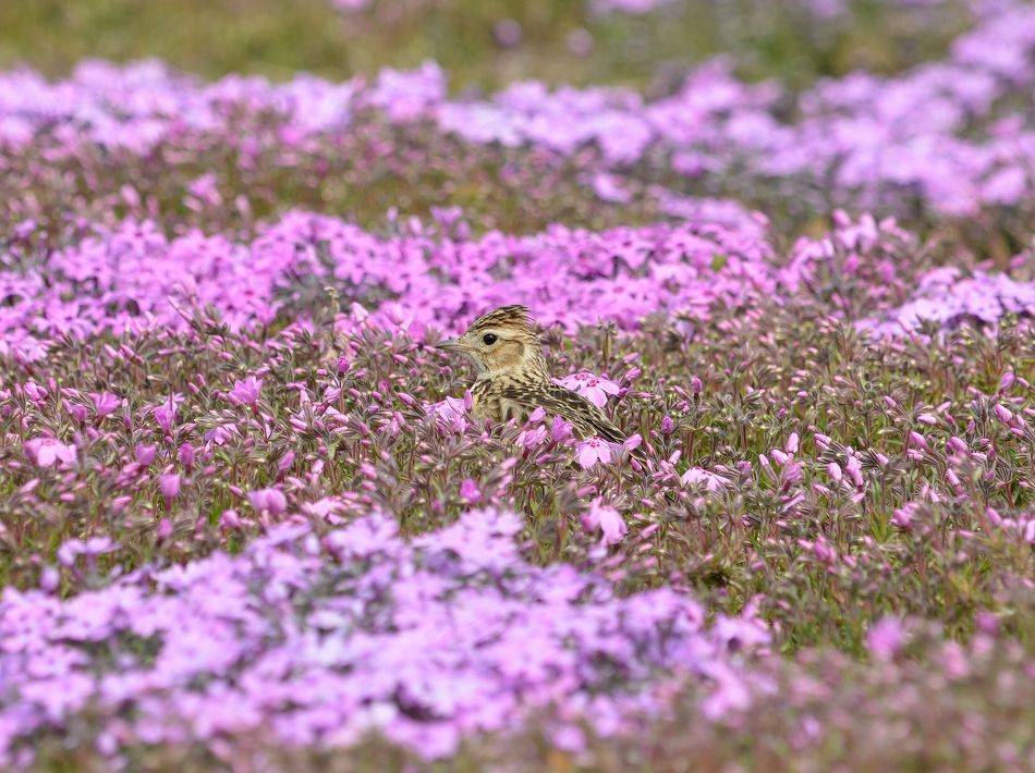 芝桜の中に何か動くもの発見 「ひばり」でしょう