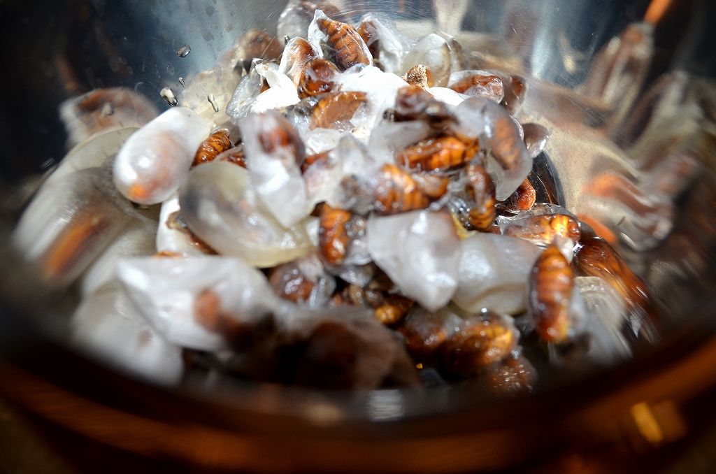 繭から糸をられ 裸になった蛹