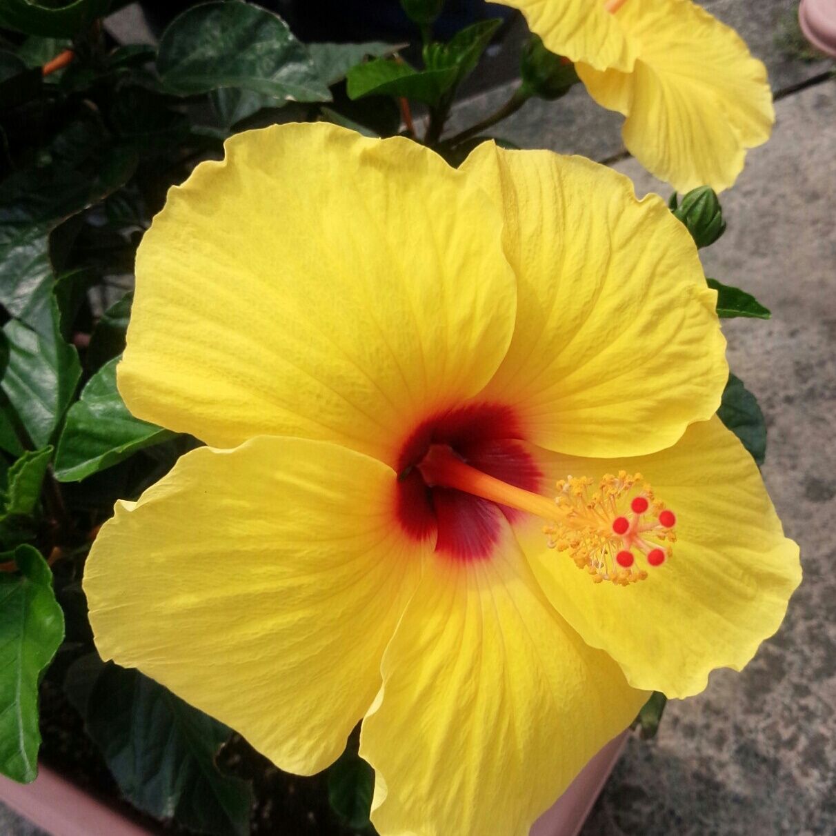 病院玄関先では ハイビスカスが迎えてくれています 携帯で一枚