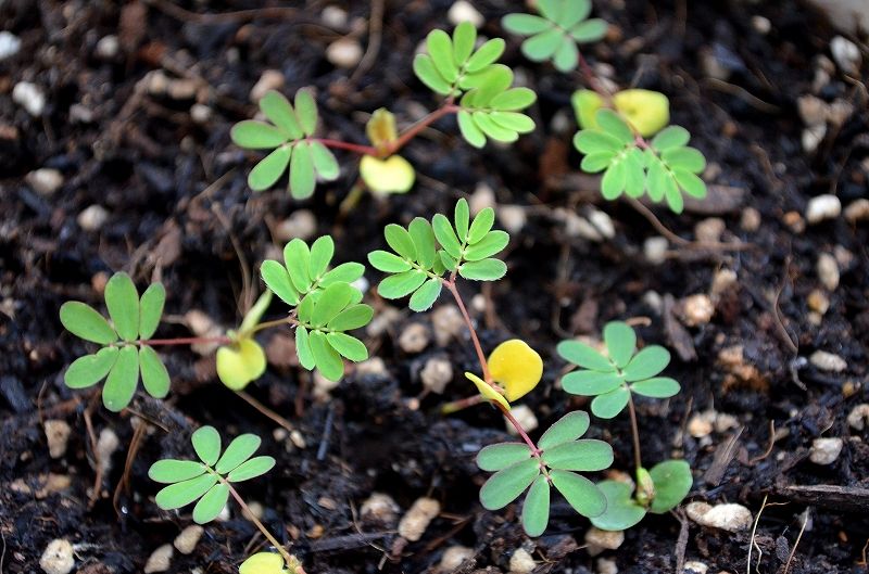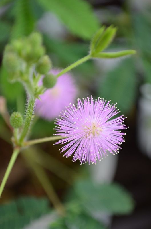 我が家のオジギソウが咲きました 玄関から神社に向けて ヤブラン