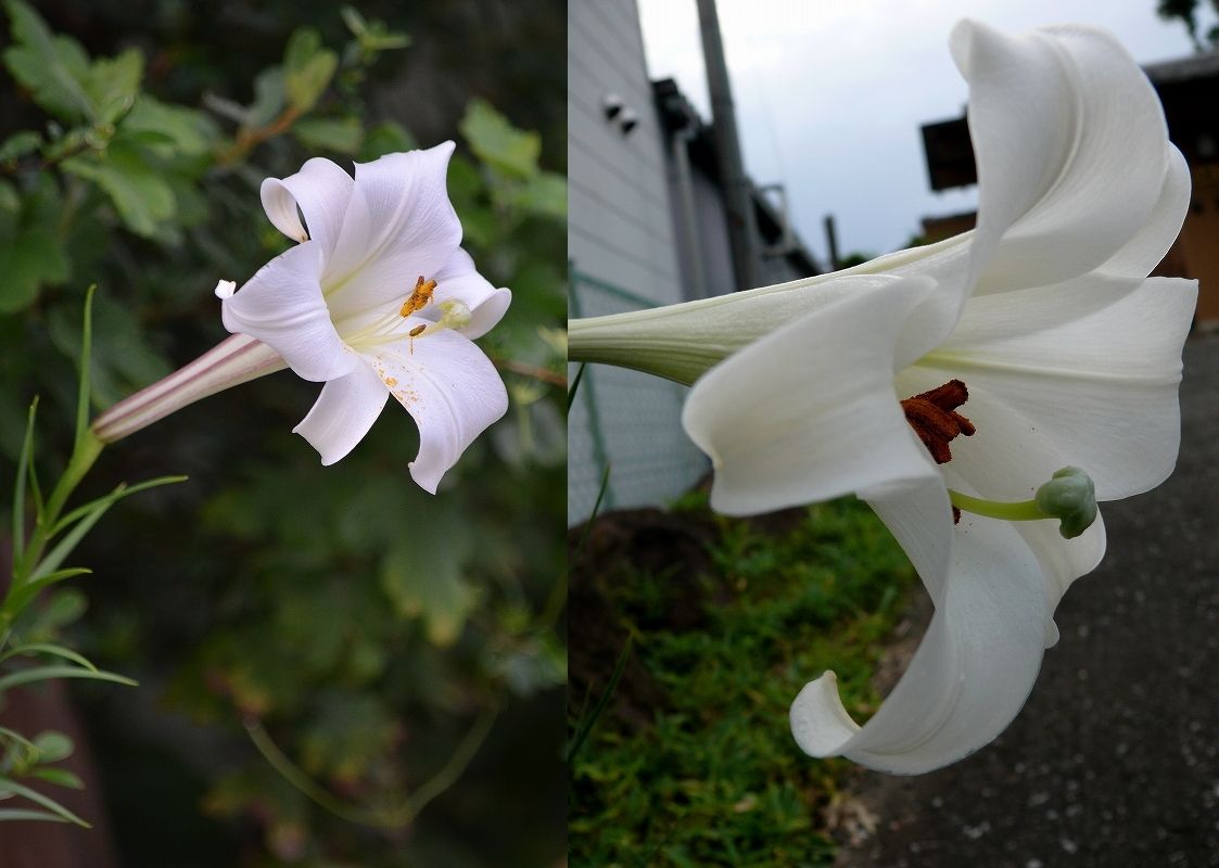少し出かけて 高砂百合と 鉄砲百合 清楚で静かに迎えてくれました