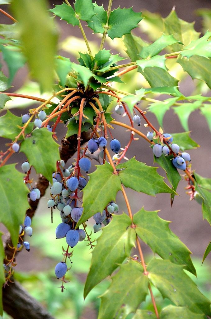 道路脇で 「マンリョウ」見つけました 見上げると「ハナミズキ」