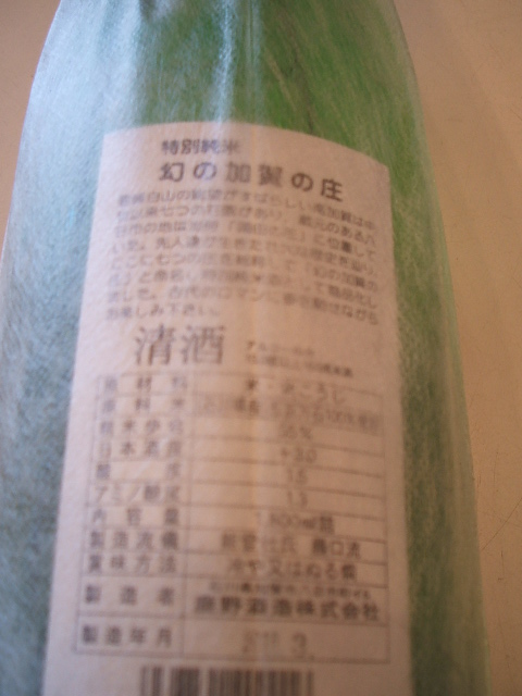 まだ出来立てのフレッシュな常きげん純米幻の加賀の庄です。¥2625(税込)
