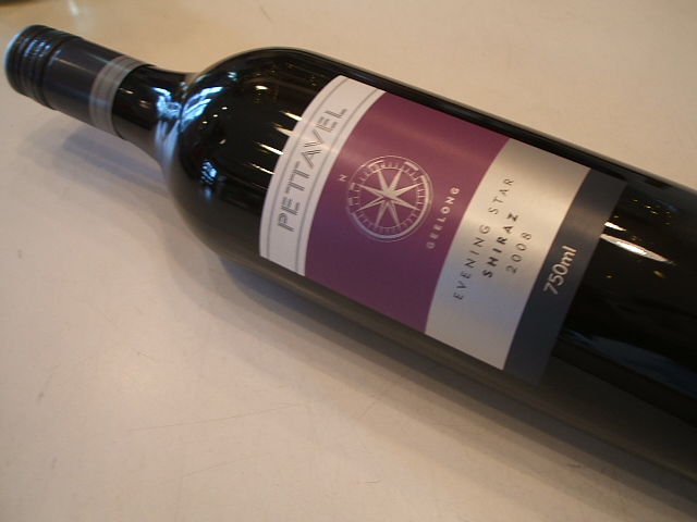 オーストラリア・ペタヴェル社のイヴニング・スターシリーズ。共にスクリューキャップ栓使用。まず赤ワインのシラーズ¥1470(税込)