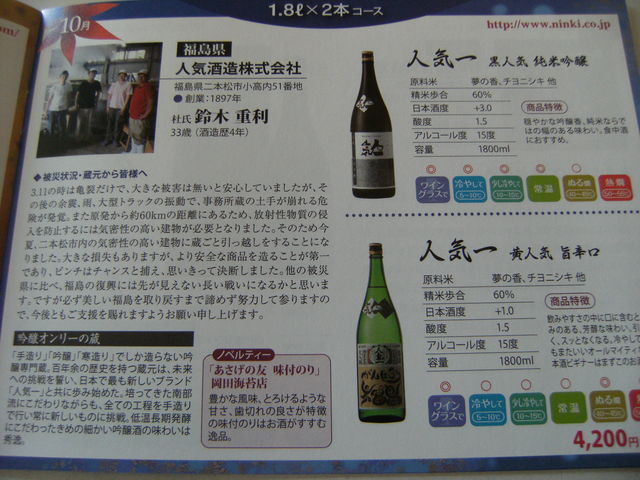 10月は福島県の人気酒造の純米吟醸と旨辛口です