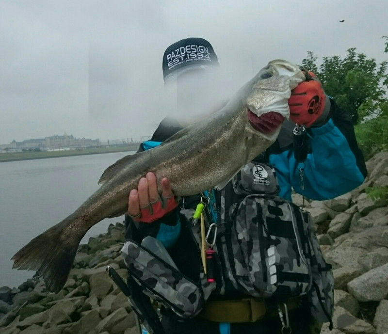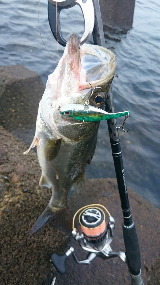 ストームのソフトバイブを投げていると、セイゴサイズがヒット・・・