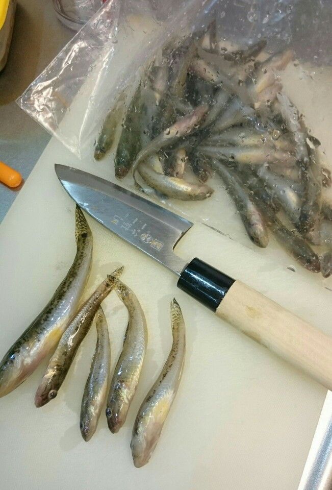 帰ってさばいて、塩水に漬けて干物にしました。
