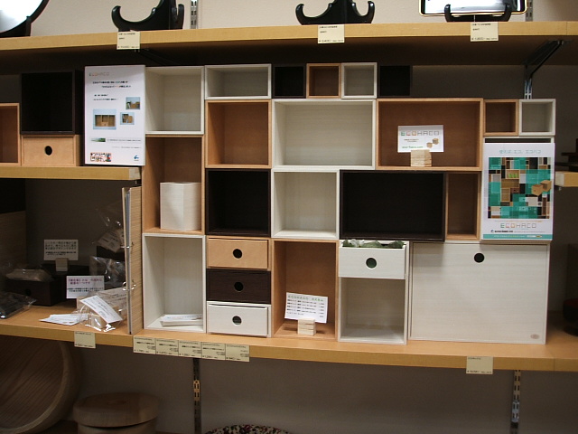 ECOHACO商品も 和歌山県産品の中に並んでいま す。和歌山といえば、多くの食品が産品として思い浮かぶでしょう。エコハコも地場産業の建具から生まれた産品です。皆さんもぜひ、ぶらくり丁方面へ行かれた折にはショップへお寄り下さい。