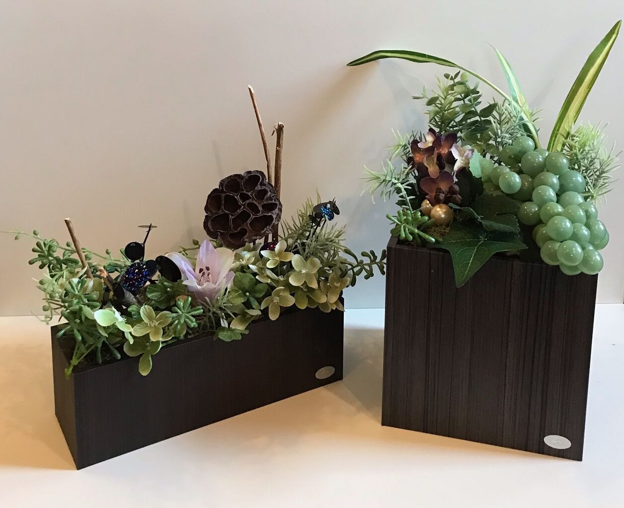 ECOHACOの売り場には、ペンホルダーの他にHACO(箱)やアレンジフラワーなどが並びます。