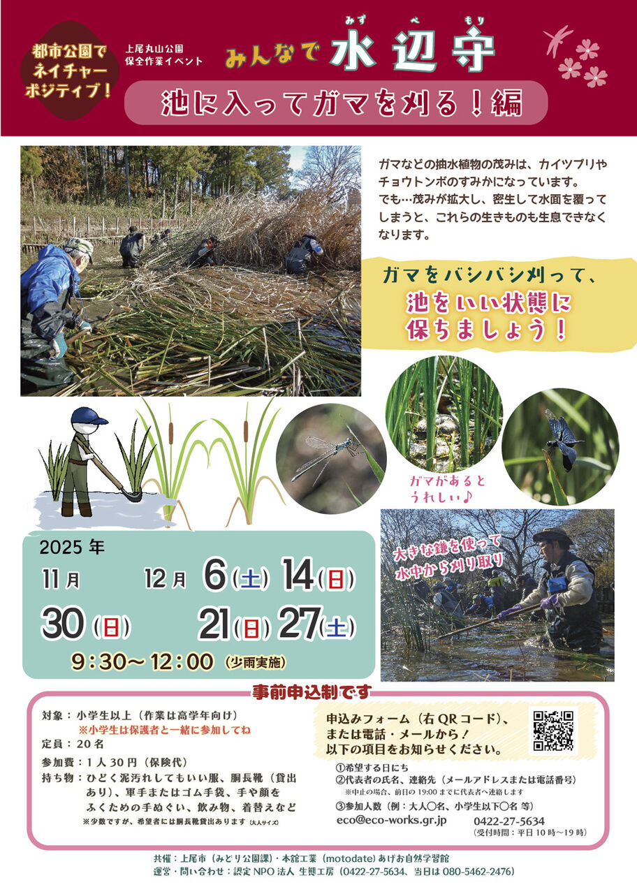持ち物:作業できる服・靴(池には入りません)、
