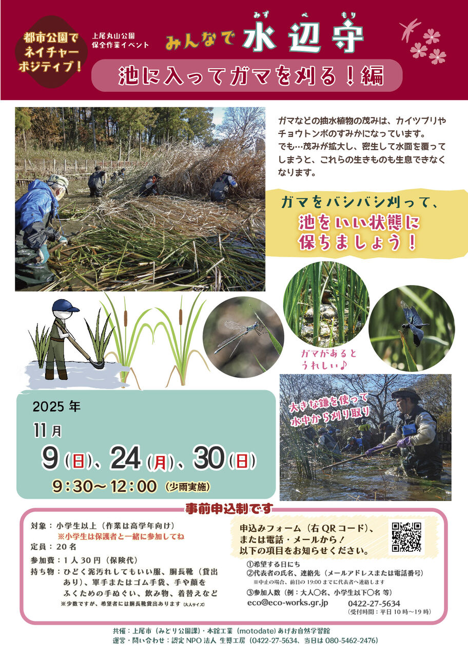 「みんなで水辺守〜池に入ってガマを刈る!編〜」を開催します!