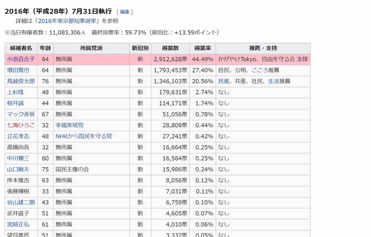 東京都知事選Wikipediaより