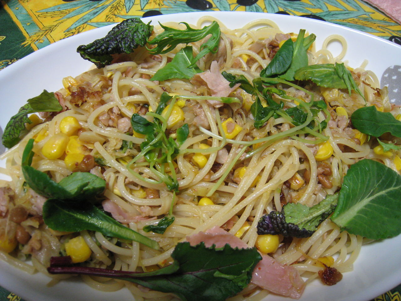 (茹で上がったら、1はざるに上げて良く水切りし、器にもりつける) - 1にプチトマトとらっきょうを加える