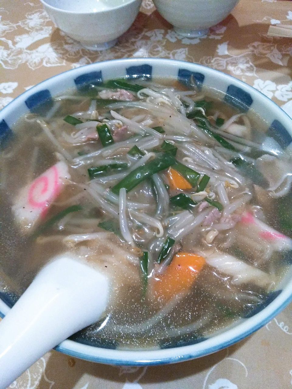 サンマーメンは優しいお味、テーブルの黒コショウで刺激足し。