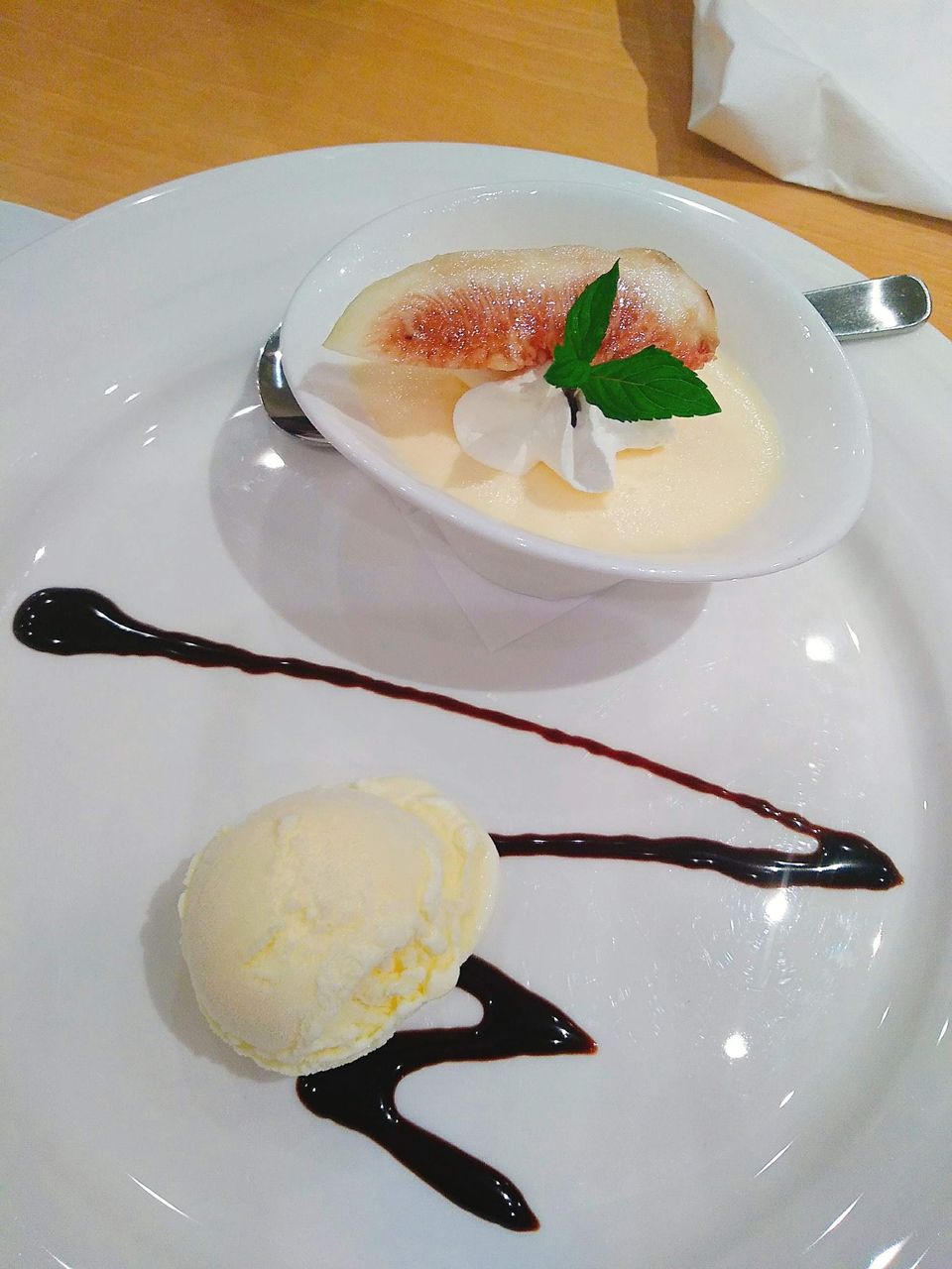 デザートの頃はもう満腹で。ババロアとアイスクリームだったのですが、甥っ子たちに進呈。