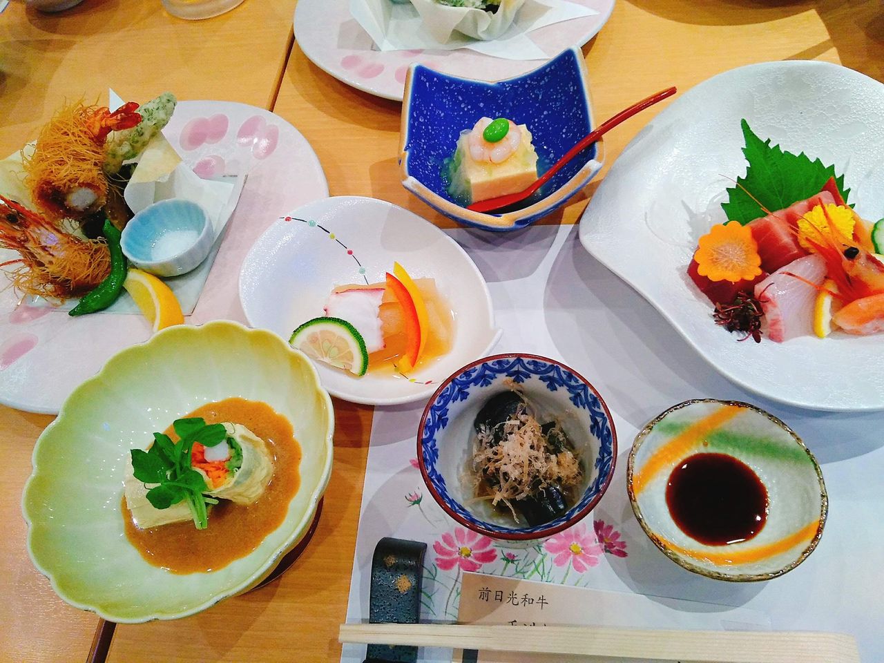 着席したらお刺身と天ぷらが運ばれてきて。