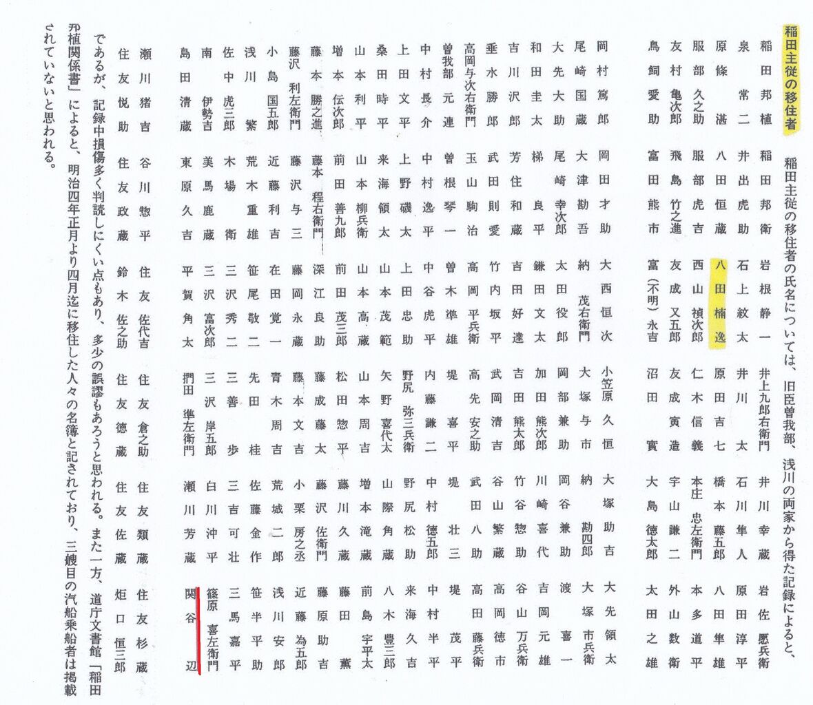 静内町史移住者名簿より