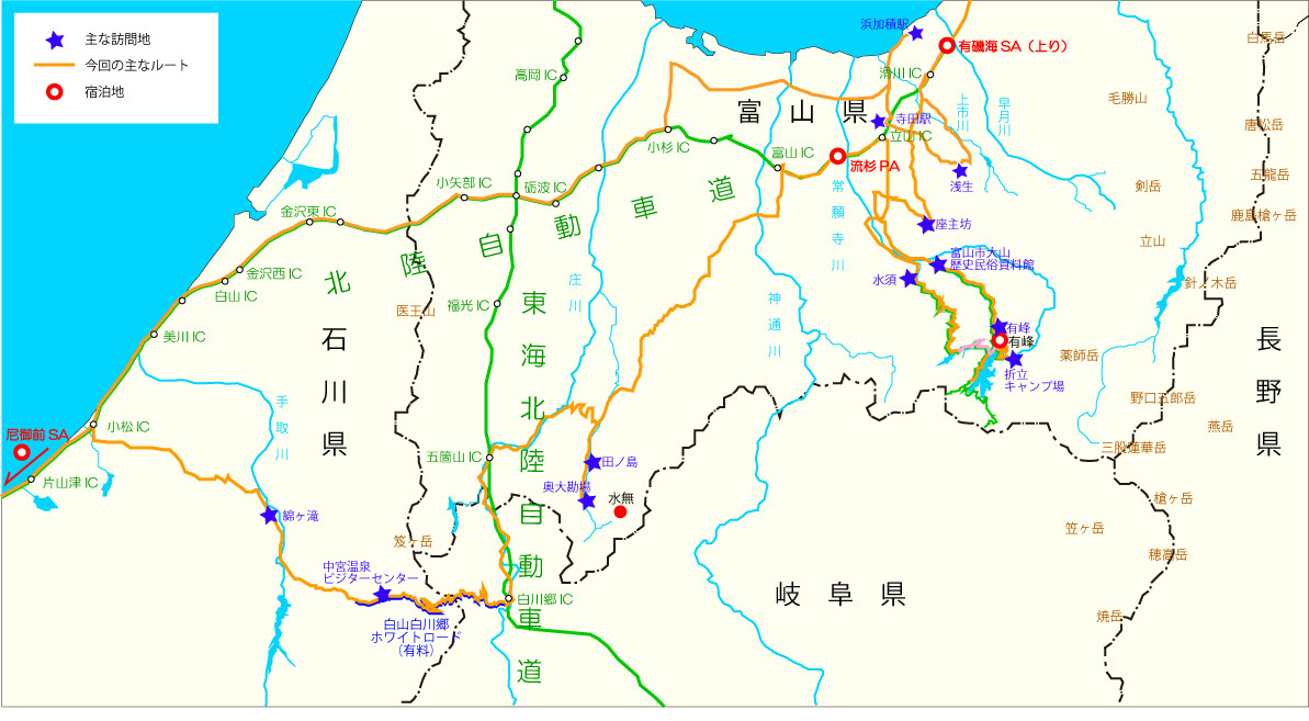 富山・岐阜・石川の県境付近の4泊4日旅で、