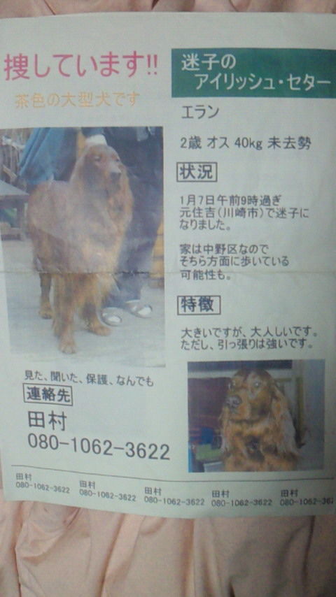 エランは川崎のアラン宅から走って帰ってきたときの捜査ポスターです。最初の日に多摩川を越えたんだよねー。
