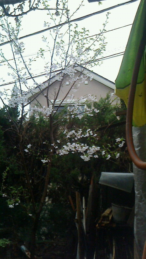 我が家のソメイヨシノ満開です。四年目にして咲きました。エランは寝ています。お花見は又中止。明日は大丈夫かな?