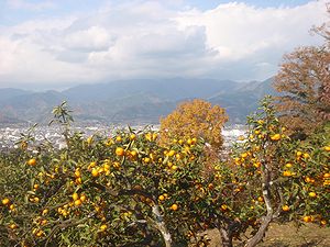↑(ミカン畑と丹沢の山並み)