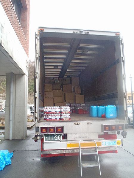今回は遠野に物資を届け、そこから釜石方面に運ぶ