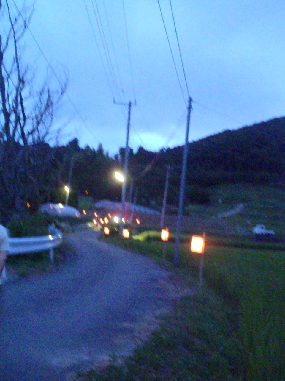 お祭り会場になる神社までの道に行灯が立ててある