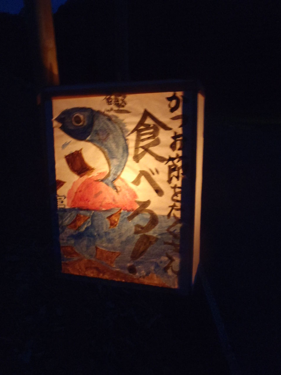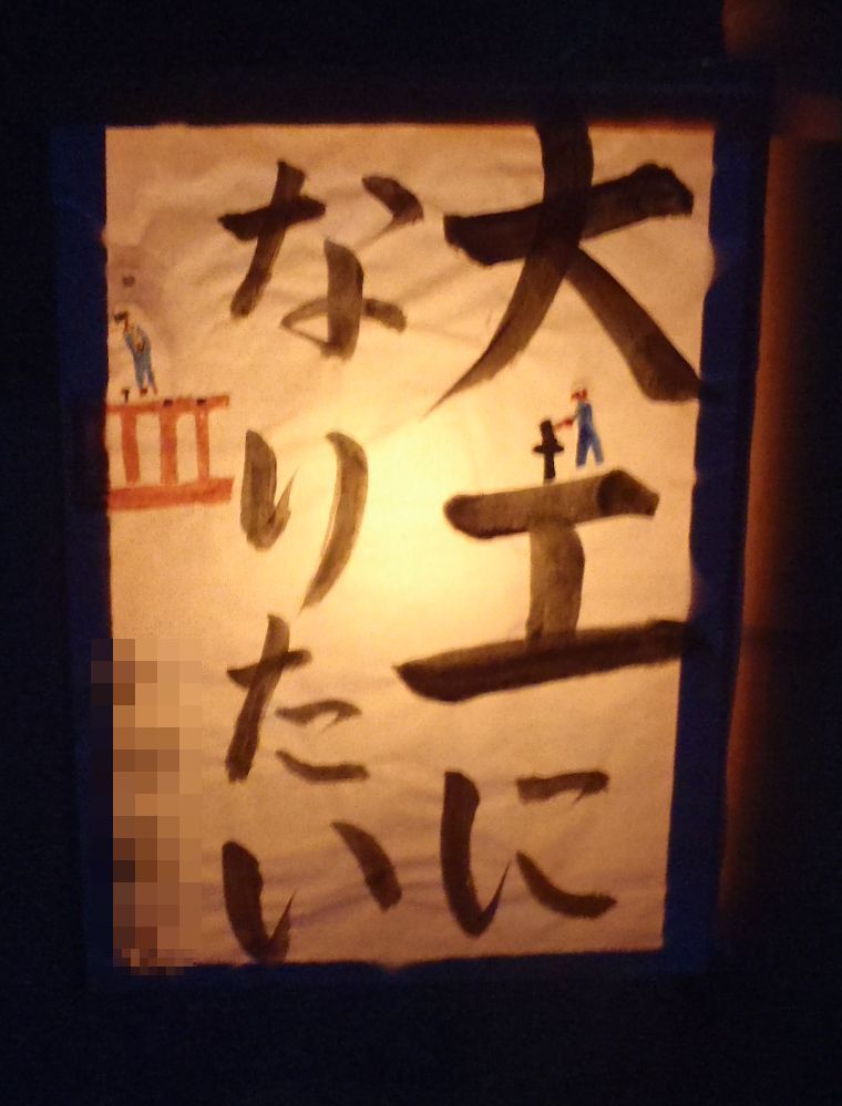 お祭りのために子ども達が書いた行灯がおもしろい