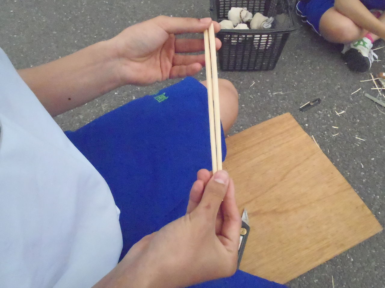 高校の授業では、今日は箸作り。