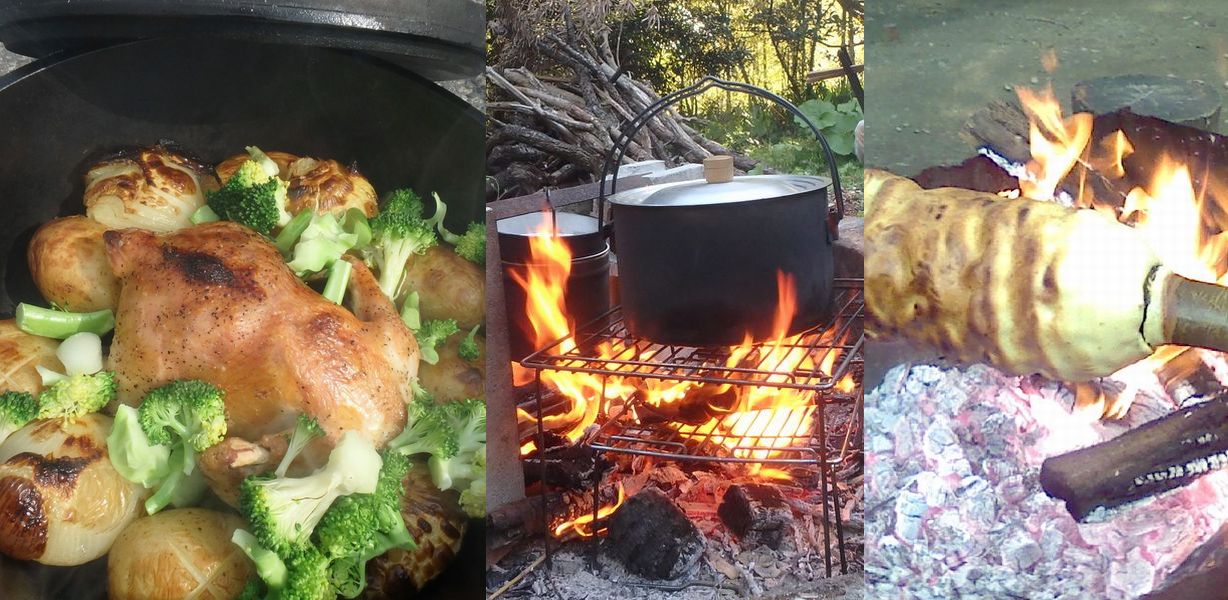 冬は親子で焚火。丸ごとチキンとバームクーヘンを焼こう!