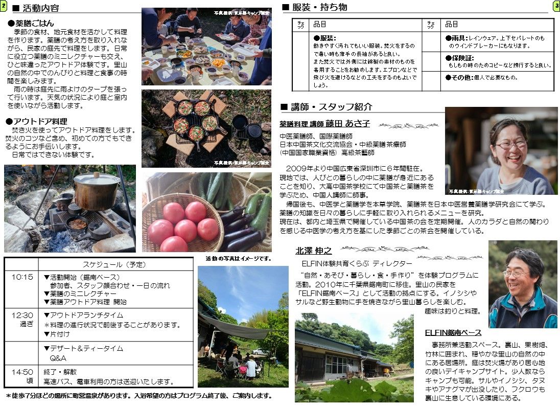 *プログラム費(講師費用含む)・食費