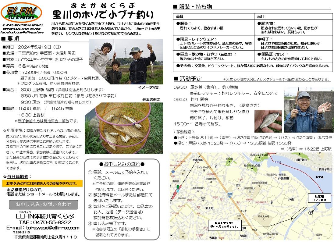 ◎里川のホソで小ブナ釣り:小学3年生~中学生およびその親子