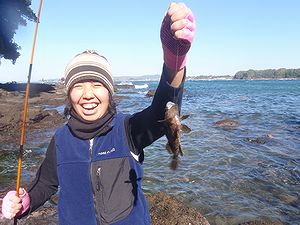 2時間ほどの間に、カサゴ2尾、ギンポ2尾、ドロメたくさん…の釣果。最大は22cmのカサゴ。こいつをキープして後はリリース。