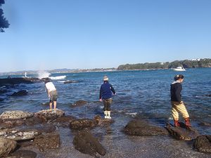 そこで急遽変更。釣りの基本を体験するため、浅場のゴロタまわり(石がゴロゴロしているところ)で探り釣り。