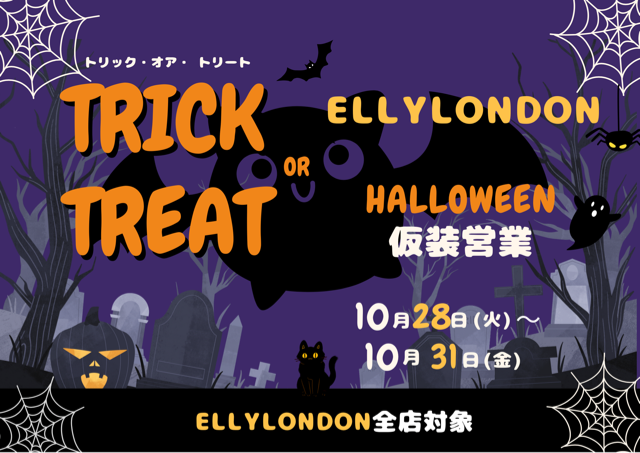 ただいまエリーロンドン全店、HALLOWEEN仕様で営業中でございます👻👻