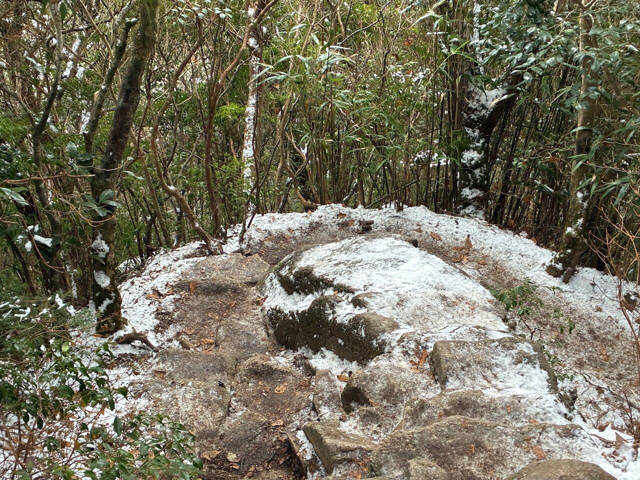 下の方は全然積雪してなかったのですが、山頂付近はズルズルだ😱