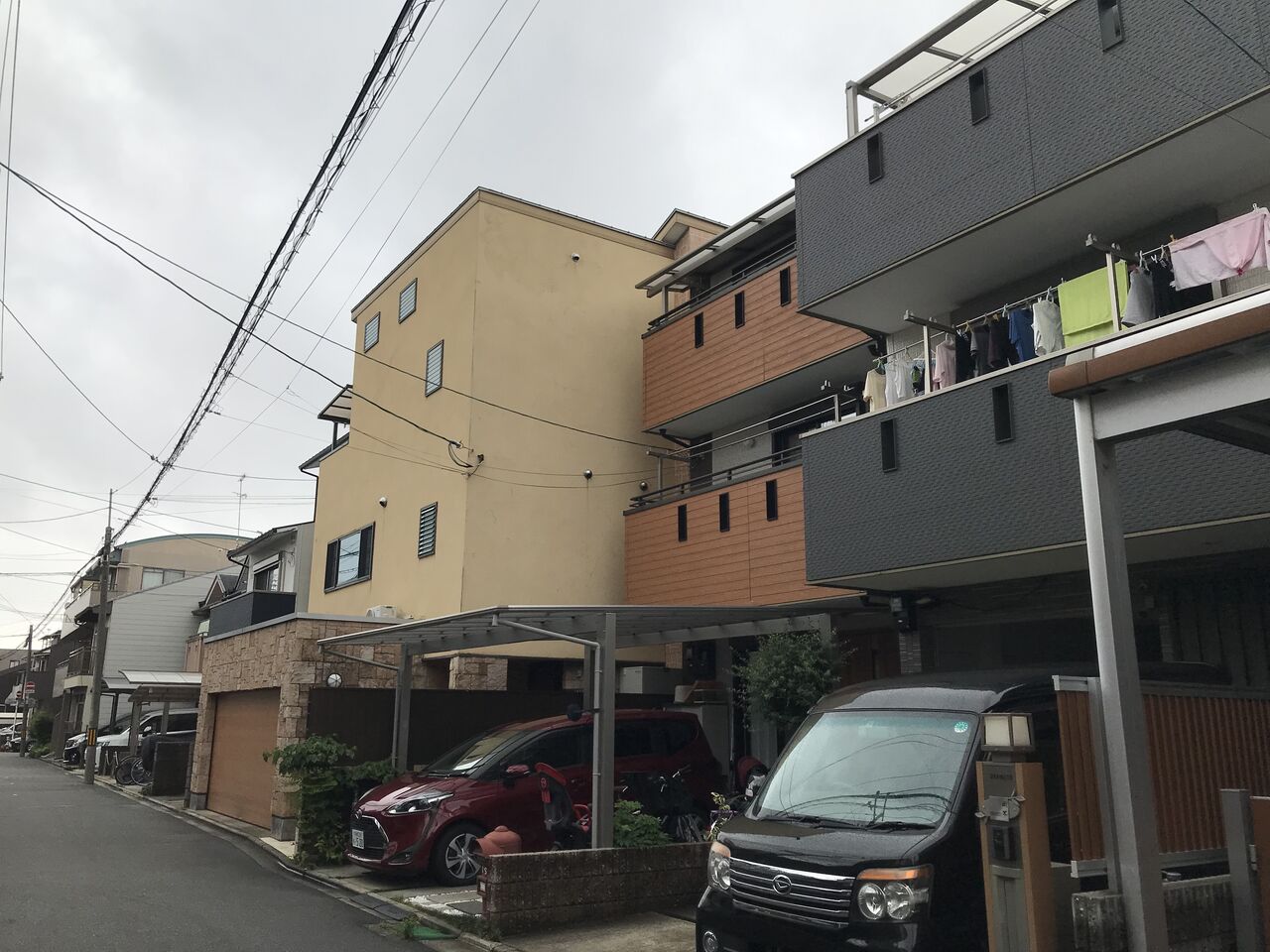 それにしても、京都の住宅地の密集具合は半端ありません。住宅地の面積は20坪もなく、隣の建物との隙間は30㎝もないのでは?こんなに窮屈では、将来、どうやって解体工事するのだろう・・・