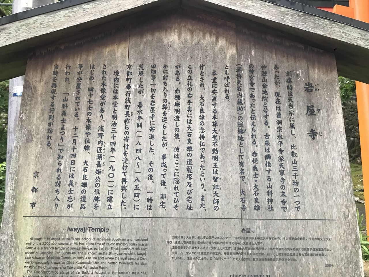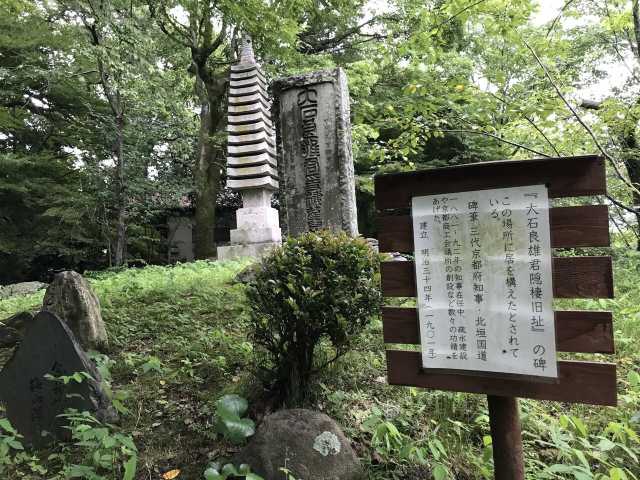 忠臣蔵で有名な大石内蔵助が、松之廊下刃傷事件で赤穂藩が改易された後に一時住んでたトコらしいです。ここで密かに仲間と会い、仇討ちの計画を練っていたのかも知れませんね。